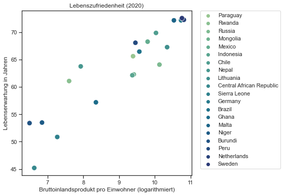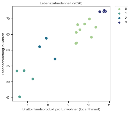 - In der oberen rechten Ecke die Länder mit dem höchsten Bruttoinlandsprodukt pro Einwohner und einer sehr hohen Lebenserwartung.